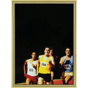 SKU: ZA68MTRK - 5 7/8" x 7 7/8" Track Brass Plated Steel Hi-Def Plaque Plate