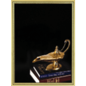 SKU: ZA46LK - 3 7/8" x 5 7/8" Lamp of Knowledge Brass Plated Steel Hi-Def Plaque Plate
