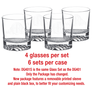 - Four Polar Camel 9 oz. Round Rocks Glasses in Black Gift Box with Printed Paper Sleeve