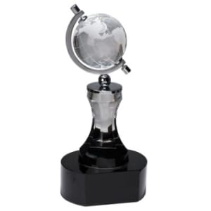 - 8 1/2" Crystal Spinning Globe with Clear Tower on Black Base