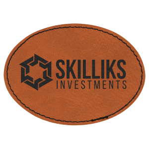 SKU: PTH655 - 3 1/2" x 2 1/2" Oval Dark Brown Laserable Leatherette Patch with Kota Pro Adhesive