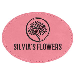 SKU: PTH657 - 3 1/2" x 2 1/2" Oval Pink Laserable Leatherette Patch with Kota Pro Adhesive