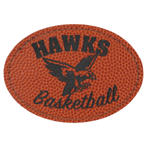 SKU: PTH666 - 3 1/2" x 2 1/2" Oval Basketball Laserable Leatherette Patch with Kota Pro Adhesive