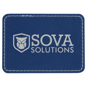 SKU: PTH279 - 3 1/2" x 2 1/2" Retangle Blue/Silver Laserable Leatherette Patch with Kota Pro Adhesive