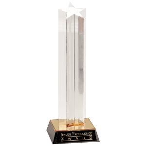 - 11" Clear Single Star Column Acrylic with Gold/Black Base