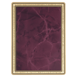 - 7" x 10" Ruby Marble Brass Plated Steel Plate with Florentine Design Borderand Four Holes