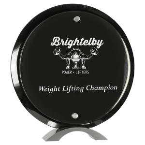 SKU: FSA485 - 8 1/2" Round Black Piano Finish Floating Acrylic Standup